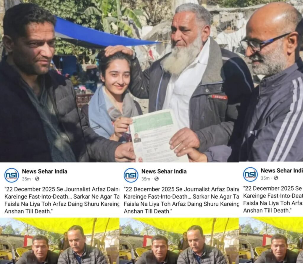 In a dramatic and deeply concerning development, journalist Arfaz Ahmed Daing has announced that he will begin a fast-unto-death from 22nd December 2025, alleging government inaction, injustice, and a systematic failure to protect journalists in Jammu & Kashmir.