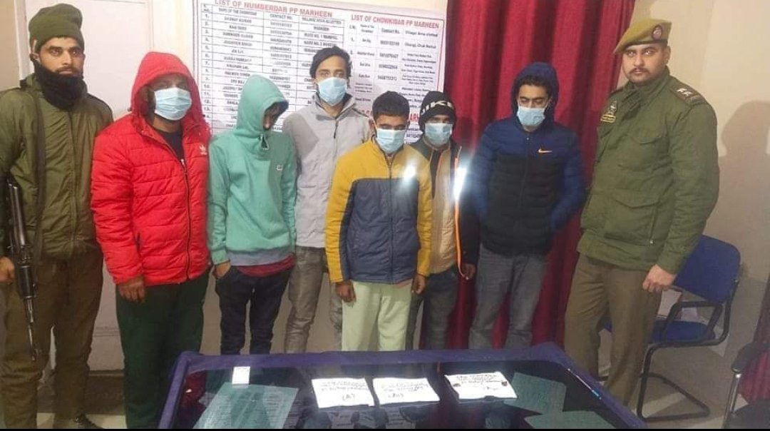 *On 06-01-2022 a Police team led by PSI Swaran Singh IC PP Marheen under the supervision of SDPO Border Sh. Sachit Mahajan-JKPS during patrolling duty in its jurisdictional area near Khanpur noticed one suspicious vehicle(Mahindra Bolero) bearing Reg. No. JK08K-1923 which was enrouted towards Link road Khanpur when reached near Banyari Pul, was directed to stop for checking. On physical checking of 1. Rajesh Singh S/o Subhash Singh R/o Dharalta Tehsil Billawar 2. Sandeep Sharma S/o Sat Paul Sharma R/o Banhore Tehsil Mahanpur 3. Pankaj Sharma S/o Dev Raj R/o Pallan Tehsil Billawar 4. Sourav Sharma S/o Subash Chander R/o Dambra Tehsil Mahanpur 5.Mukesh Kumar S/o Des Raj R/o Kupdi Tehsil Mahanpur containing approx. 5.04 grams chitta like narcotics was recovered from their illegal possession. Thereafter all the recovered narcotics was seized and all the six persons were arrested on spot. On this a case vide FIR No. 04/2022 U/S 8/21/22/29 NDPS Act has been registered at Police Station Rajbagh while further investigation is underway.*